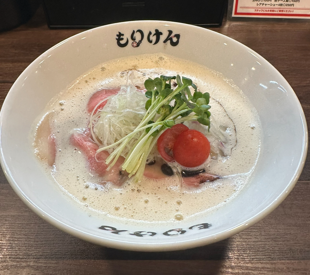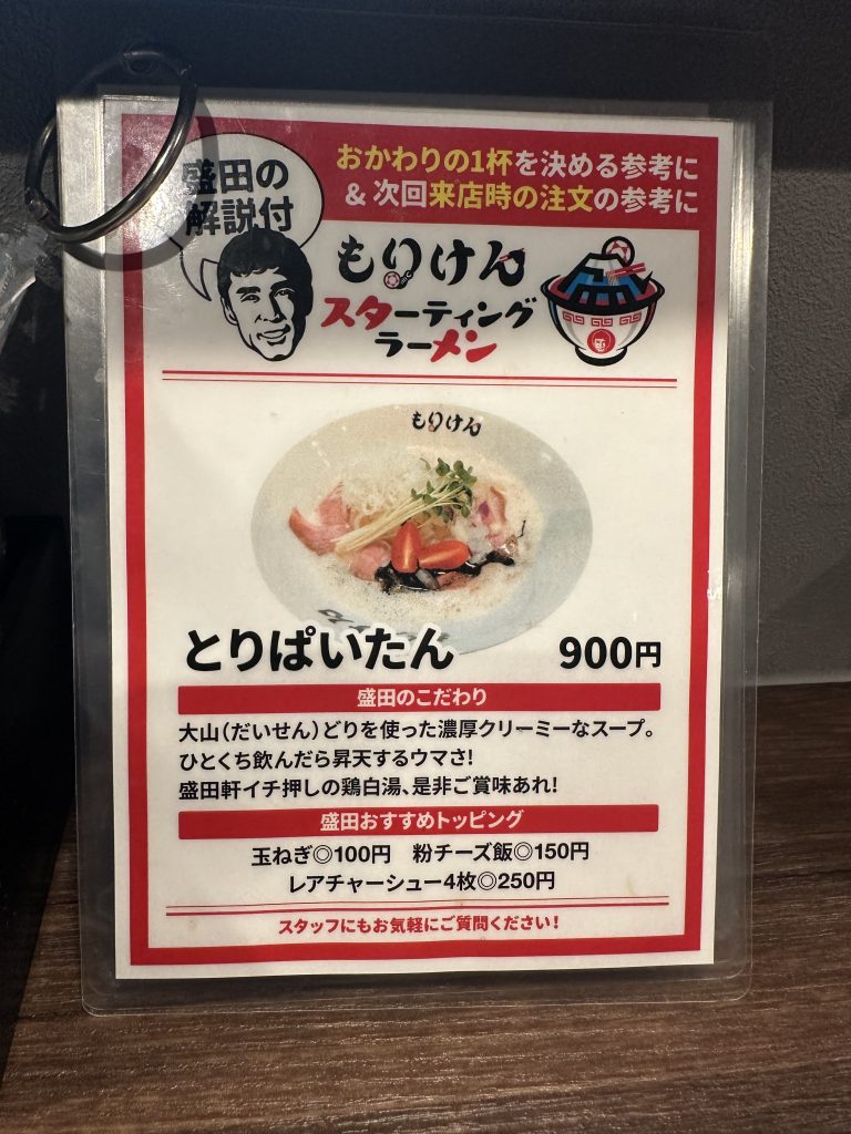 盛田さん曰く、盛田軒スタンダードといえば、「とりぱいたん(鶏白湯)」ということで、早速とりぱいたんを注文した。