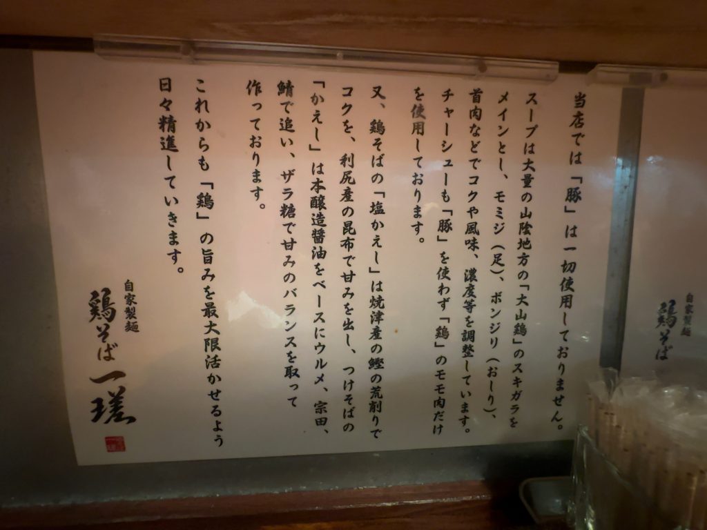 細部にまでこだわりが光る『鶏そば一瑳』の一杯は、鶏の魅力を存分に引き出した、まさに“鶏ラーメン”の真髄を感じさせるもの。