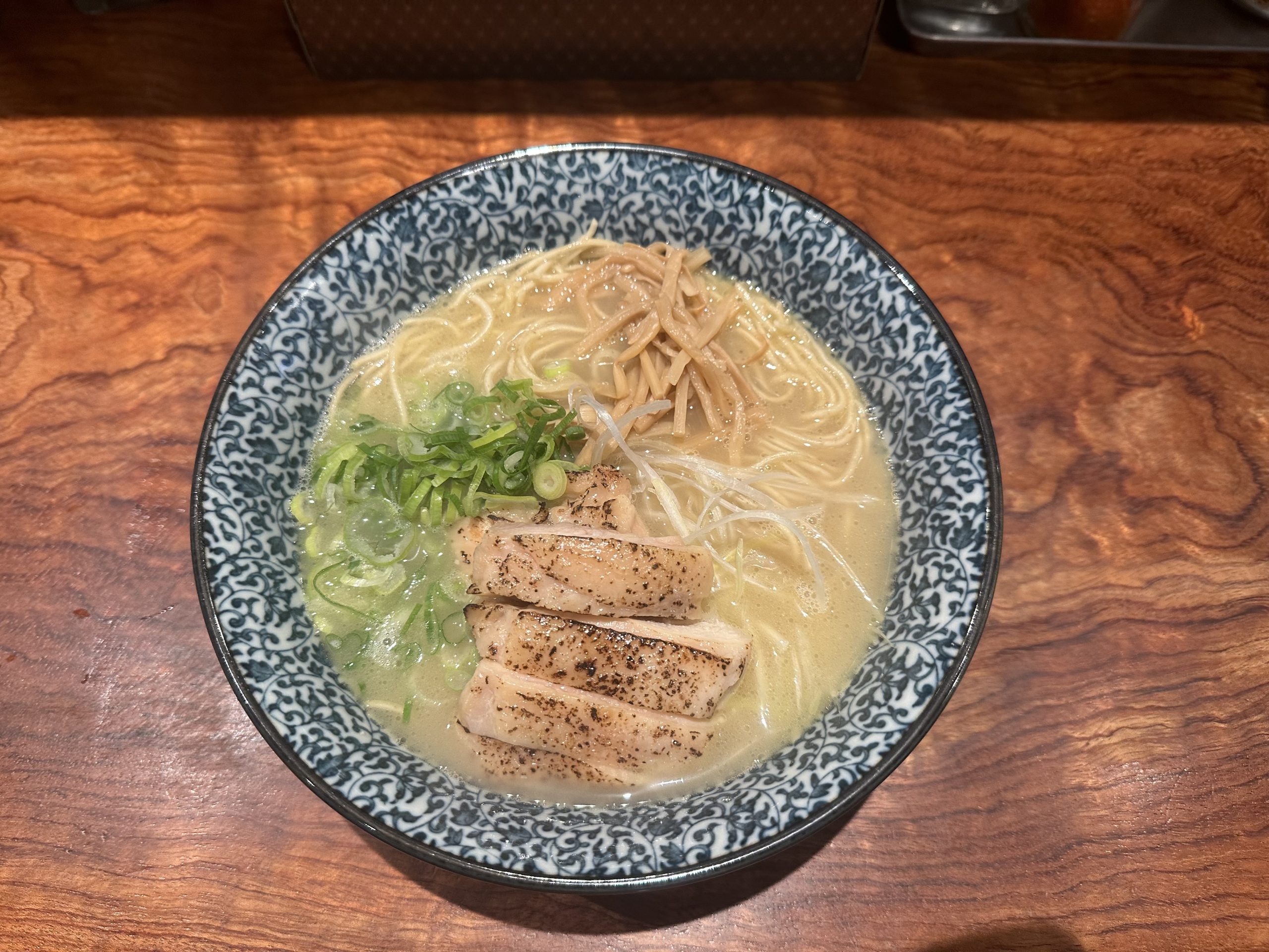 今回は、店の看板メニューの1つである「濃厚鶏そば」(880円)に、「鶏チャーシュートッピング」(250円)を追加して味わった。