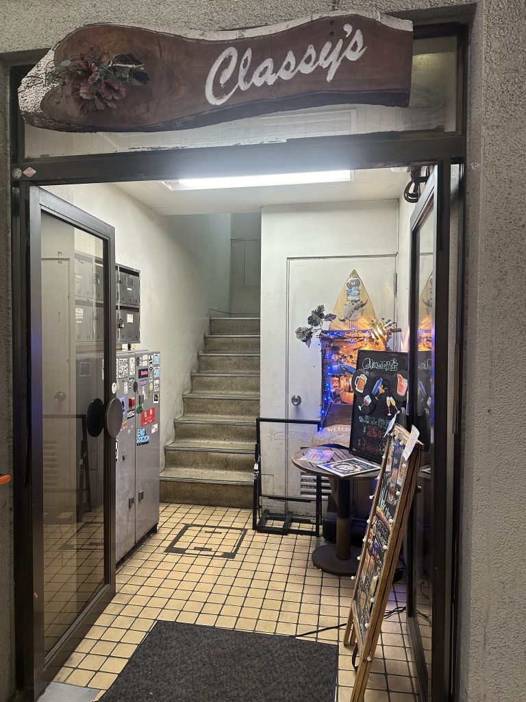 JR川崎駅東口を出て目の前の道をまっすぐ10分ほど歩くと、左手にビルの入口があり、目の前の階段で2階に上がるとクラッシーズバーというバーがある。