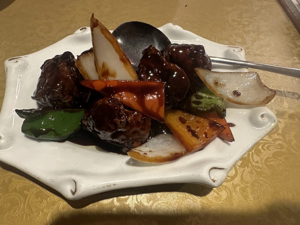 野菜はしっかりとした食感と黒酢の甘みが感じられる。