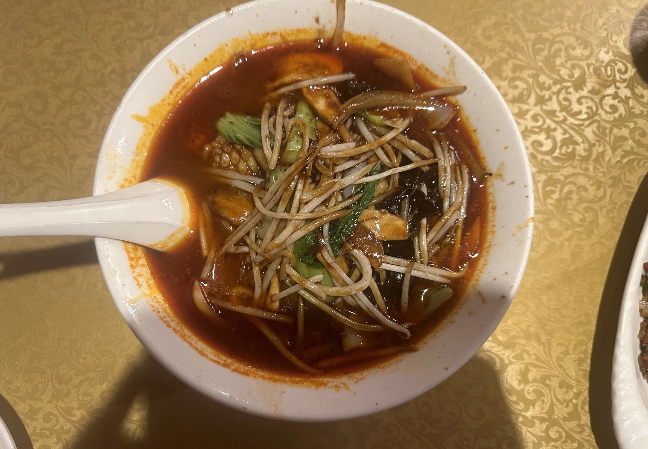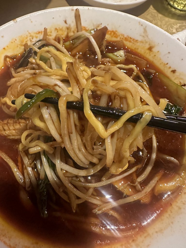スープは味噌ベースのスパイシーなスープで、薬膳的な香ばしい味わいがある。