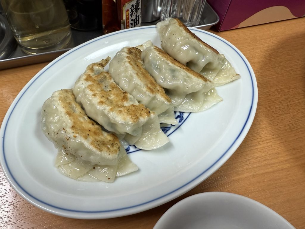 厚めの皮で包まれた餃子は、噛んだ瞬間に肉汁がじゅわっと溢れ出す。ニラの香ばしさが口の中に広がる。