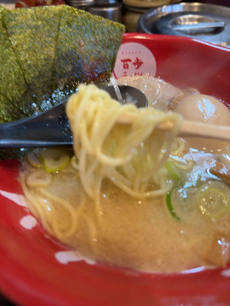 スープは程よい油の層がありながら、しつこすぎず飲みやすい仕上がり。豚骨のコクがしっかり感じられ、最後まで飲み干したくなる美味しさだ。