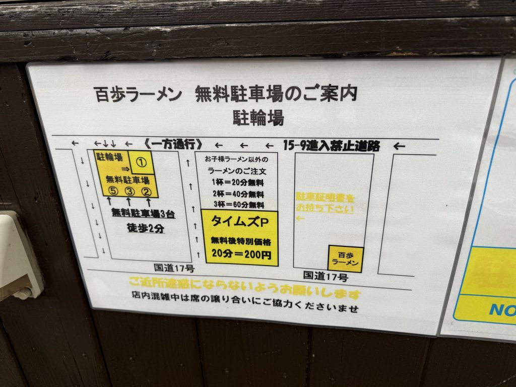 駐車場は少し徒歩2分ほどの場所にお店の無料駐車場がある。