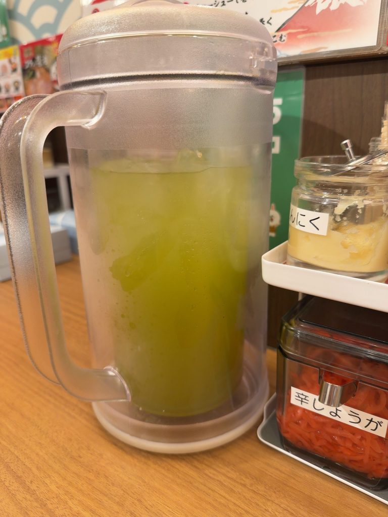 さらに、冷たい緑茶が無料で提供されているのも有難い。濃厚な家系スープの後にすっきりと口をリセットしてくれる。