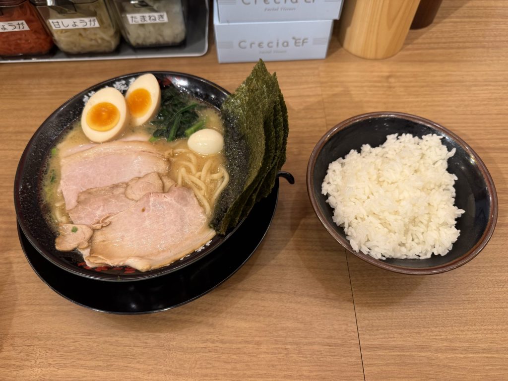 ラーメンは定番の家系(醤油もしくは塩)ラーメンにつけ麺や台湾まぜそば、中華そばなどもある。