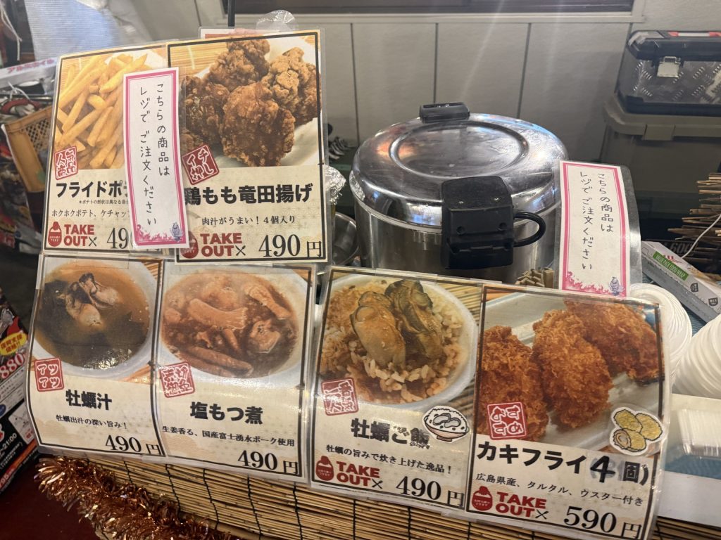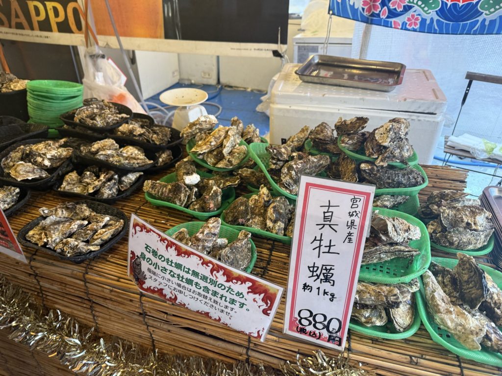 看板メニューはやはり牡蠣。宮城県産の真牡蠣が約1kgで880円(税込)とお手頃価格。