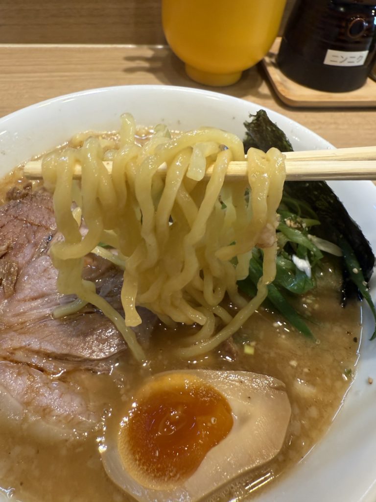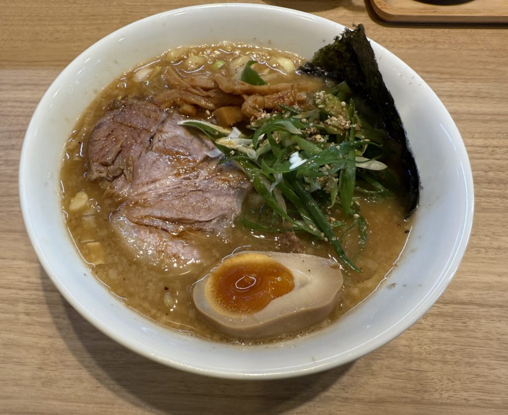 筆者もオープン当初に訪れていたが、実際に今はさらにコク深く、背脂を入れることでまろやかな旨味が際立つ一杯に仕上がっている印象だった。豚骨の濃厚さと醤油の味わいが絶妙なバランスだ。